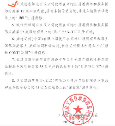 2015年12月31日,根據(jù)國(guó)家工商總局商標(biāo)評(píng)審委員會(huì)商評(píng)馳字[2015]53號(hào)文件通告,東風(fēng)精鑄“和鼎”圖形商標(biāo)(商標(biāo)注冊(cè)證號(hào)4055897/12類(lèi)),被國(guó)家工商行政管理總局認(rèn)定為“中國(guó)馳名商標(biāo)”。“和鼎”商標(biāo)成為東風(fēng)汽車(chē)零部件(集團(tuán))有限公司首個(gè)成功注冊(cè)并入選中國(guó)馳名商標(biāo)的汽車(chē)零部件品牌。